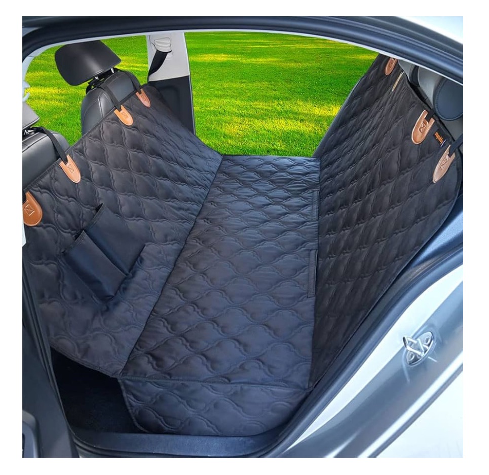 Une bonne toile est essentielle pour éviter les poils et les traces de pattes sur les bancs arrière. De plus je vous recommande fortement une ceinture de sécurité qu’on attache après son harnais. Sa permet de le garder en toute sécurité pendant le trajet.